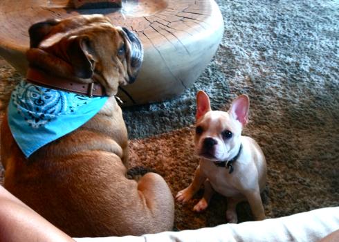 A younger Leo with his other Frenchie